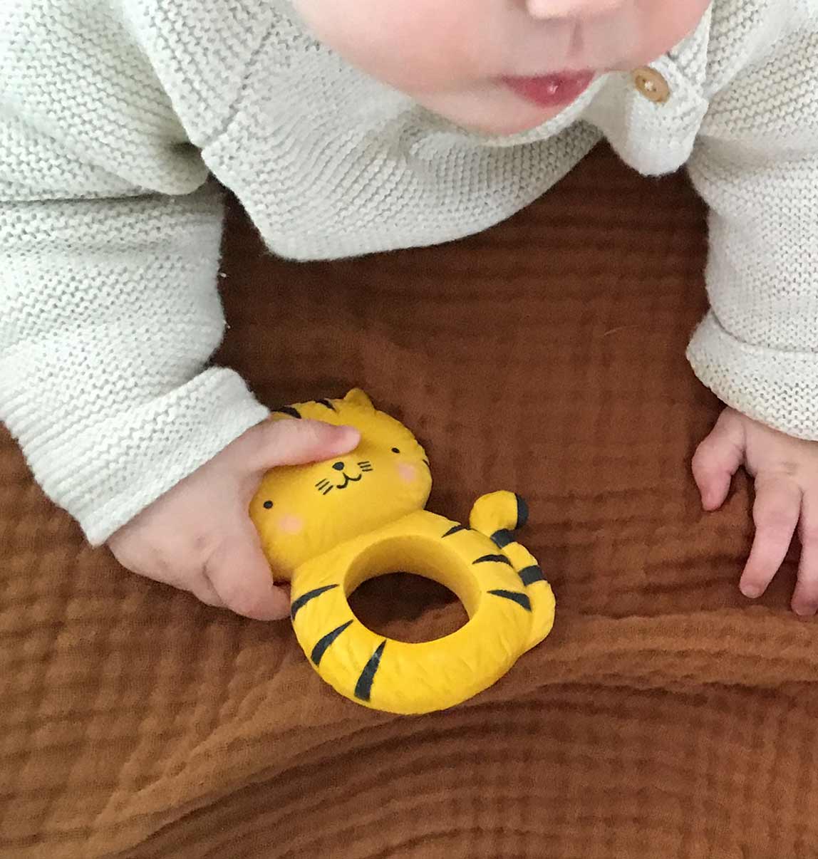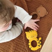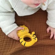 | Au! Začínajú vášmu dieťatku rásť prvé zúbky? Máme prvú pomoc! Prsteň na zúbky s dizajnom tigríka bude vášmu drobcovi ideálnym malým priateľom, ktorého už nepustí z ručičiek. Toto hryzátko na prerezávanie zúbkov neobsahuje škodlivé látky, je vyrobené zo 100% prírodného kaučuku z gumového stromu Hevea a má jemnú vôňu. Perfektné pre každé bábo, ktoré pociťuje nepríjemné pocity z prerezávania zúbkov. Hryzátko sa predáva v krásnej darčekovej krabičke. Je tak ideálnym darčekom pre nové mamičky. PS. náš tigrík nehryzie! Detaily: Rozmery: 7,5 x 10,3 x 3,7 cm Materiál: prírodný kaučuk Neobsahuje škodlivé látky ako PVC, BPA, ftaláty a nitrozamíny Všetky naše hryzátka vyhovujú nasledujúcim testovacím štandardom: EN71 (1, 2 a 3), ASTM, REACH, CPSIA a California Proposition 65. |